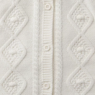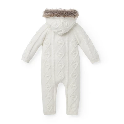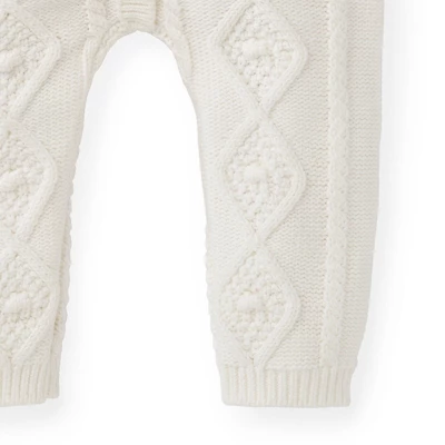 - Get your little one cozy and holiday ready in our super soft 100% cotton hooded cable knit romper. A beautiful cable pattern adorns the front and back, and center front button closure ensures easy dressing.