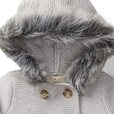 Our hooded sweater cardigan is now part of a beautiful gift-worthy set! Super soft 100% organic cotton purl stitch adorns our faux fur trimmed hoodie cardigan and matching leggings. Perfect for baby girl or baby boy!