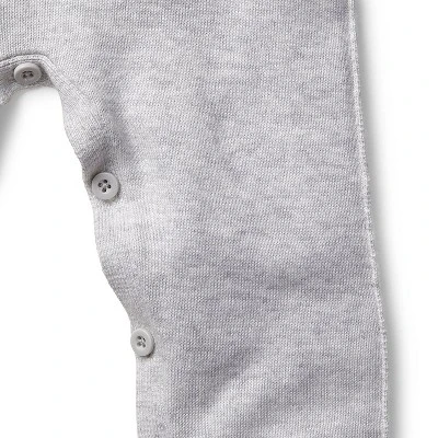 This organic cotton raglan sweater romper offers all-in-one dressing for your baby. This item features soft rolled edges and a tiny pocket. Dressing baby is easy with buttons at the legs and shoulder. It is knitted in fine gauge yarns to allow for maximum softness on both the outside and inside of the garment.