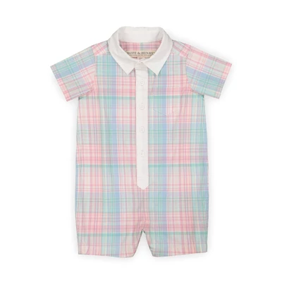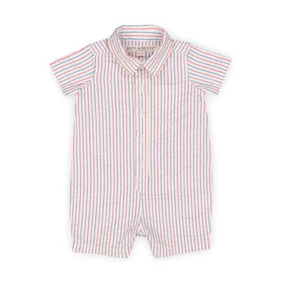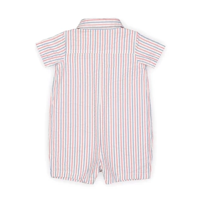 Thanks to our breezy organic cotton seersucker, our woven one-piece will keep your little guy cool on warm-weather days. Features a white woven collar and button placket, functional front pocket, and button closure down the center front. Makes a great baby shower gift or special occasion outfit for a sweet little one!