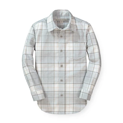 Our flannel button down shirts are made with super soft organic cotton in a range of richly colored classic plaids. Features sueded fabric on both sides for a soft and lofty finish that resists pilling and ensures a long life to be worn, loved, and passed down. Faux suede elbow patches and faux tortoiseshell buttons at the sleeve cuffs and center front. This shirt is also part of our family dressing collection and can be found in our Mens section.