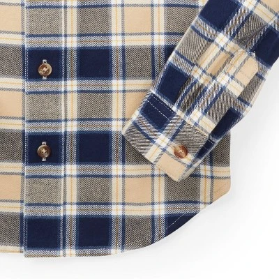 Our perfectly cozy button down shirts are made with hefty shirting weight flannel in a range of richly colored classic plaids. We’ve sueded the fabric on both sides to create a soft and lofty finish that resists pilling, and our high quality 100% cotton ensures a long life to be worn, loved, and passed down. Faux tortoiseshell buttons at the pocket, cuffs, and placket polish off the look. This shirt is also part of our family dressing collection and can be found in our Mens section.