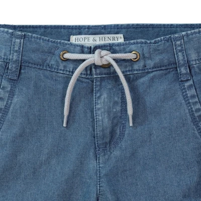 This rolled-cuff chambray pant is an instant classic, created in fine organic oxford fabric that has been indigo-dyed to give it character and texture. With a cool and classic cut, he can take it from playtime to picture time in a snap. Features a zip fly, drawstring closure, adjustable inner waist for ideal fit and comfort, welt flap pockets at the back with faux tortoiseshell buttons, and functional slash pockets in the front.
