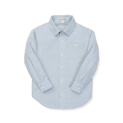 Look no further, this is the softest oxford shirt your little guy will love to pair with everything. Our organic cotton yarns are densely woven for long life and ultimate comfort. Features a pointed collar, functional front pocket, and matte finish pearlized buttons. Pair with one of our incredible cotton sweaters or suiting for the complete look!