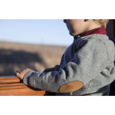 Our handsome vintage-inspired cardigan is a new version of a timeless classic. Knit in our signature soft organic cotton, it features a button front closure, contrast tipping along the rib trim, faux suede elbow patches, and two front pockets for keeping hands warm and cozy. A cold weather staple he’ll love to wear!