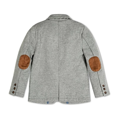Our tailored knit blazer in soft jacquard fleece pairs comfort with picture-perfect style. Features classic styling, faux horn buttons, front patch pockets, and faux suede elbow patches. A dressy look he will love to wear!