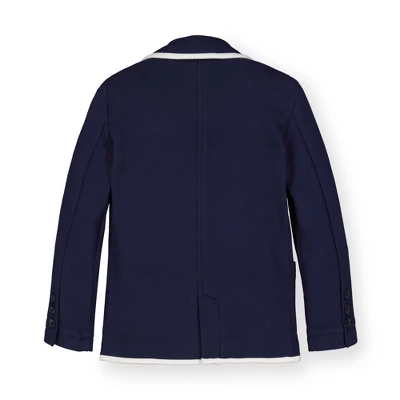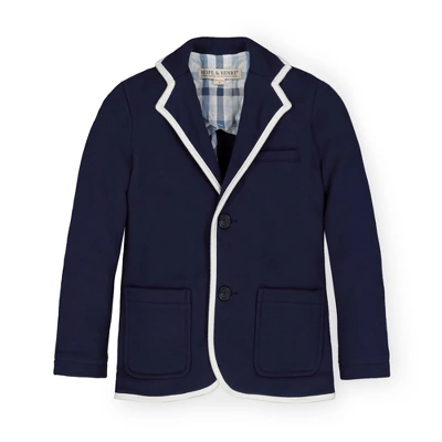Our french terry blazer is an easy way for your guy to dress up and still be comfortable! Features contrast piping, two front flap pockets, and a welt pocket at the chest.