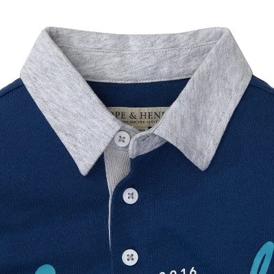 Classic styling and fine organic cotton jersey make our short sleeve rugby tee sure to be his favorite. It’s super soft thanks to a special wash technique and features a graphic at center front. Front button placket and contrast collar in white.