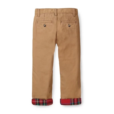 Our modern fit chino has been updated for cooler temperatures with a soft woven lining. Crafted in soft organic cotton twill with a carbon-brushed finish, faux horn button, back welt pockets, and an adjustable waistband for ultimate comfort and superior fit. These classic pants are sure to be worn, loved, and passed down again and again!