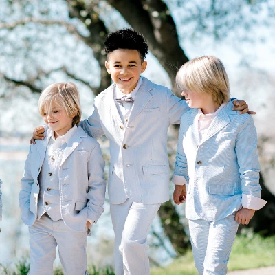 Our traditional linen blend blazer shows off his cool summer style to perfection. Ours is cut in a soft linen and cotton blend, featuring all the classic details: a button front with faux tortoiseshell buttons, notch collar, welt chest pocket, functional front flap pockets, and fully lined. Dress it down with our organic tees and denim, or dress it up with the complete linen suit!