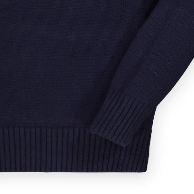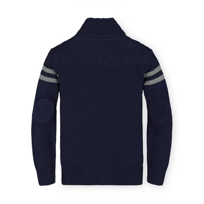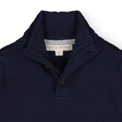 This stylish mock neck pullover in soft organic cotton will be a staple in your boy’s cool weather wardrobe. Features sporty sleeve stripes, tonal elbow patches, rib trim, and a cool button placket.