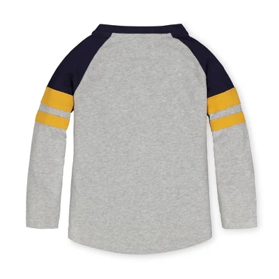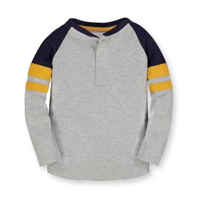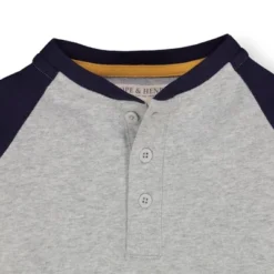 Our long sleeve raglan henley is made from soft 100% organic cotton and perfect on its own or layered under one of our incredible button downs or jackets. Features a henley button placket, contrast raglan sleeves, and pieced sleeve stripes in a pop of color.