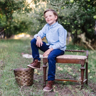 The softest oxford shirt he’ll love to pair with everything for a crisp, polished look. Features densely woven organic cotton, a pointed collar, matte pearlized buttons, and a canvas logo label at the inner placket. This classic shirt layers wonderfully under our line of incredible organic cotton sweaters and stylish suiting!