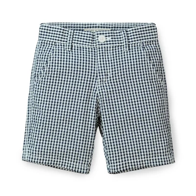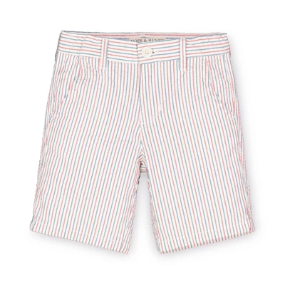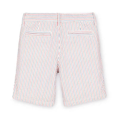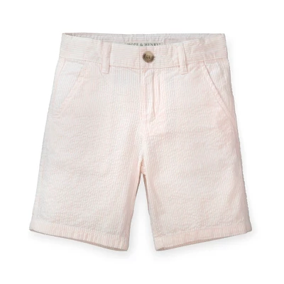Our modern fit seersucker short will be the one your boy reaches for every day, on special occasions and weekend play dates alike. Features organic cotton seersucker, faux horn button, side pockets, back welt pockets, and an adjustable waistband for ultimate comfort and superior fit. These are sure to be worn, loved, and passed down again and again!