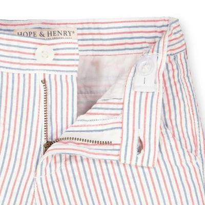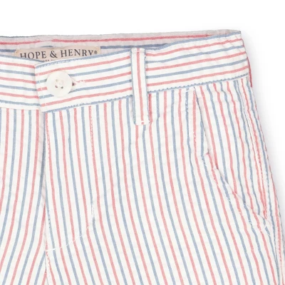 Our modern fit seersucker short will be the one your boy reaches for every day, on special occasions and weekend play dates alike. Features organic cotton seersucker, faux horn button, side pockets, back welt pockets, and an adjustable waistband for ultimate comfort and superior fit. These are sure to be worn, loved, and passed down again and again!
