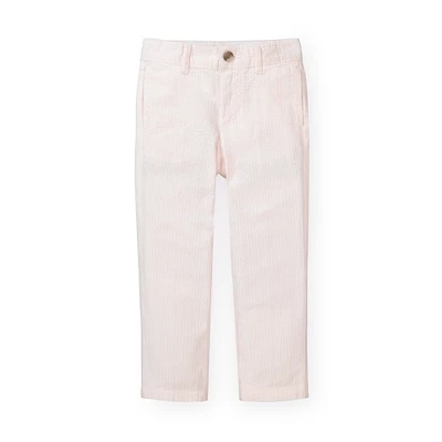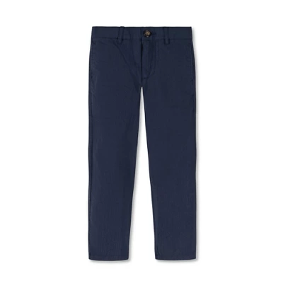 Our classic organic cotton seersucker pant is the perfect look for special occasions with the family or a trip to the beach. Features a zip fly with faux horn button, side pockets, back welt pockets, and an adjustable waistband for ultimate comfort and superior fit. Keep it casual or dress it up with our complete seersucker suit!
