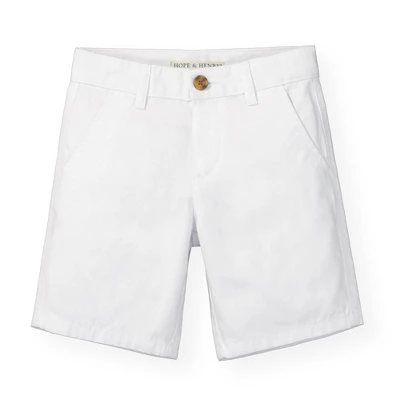 Our modern fit chino short will be the one your boy reaches for every day, on special occasions and weekend play dates alike. Features soft 100% organic cotton twill with a carbon-brushed finish and a hint of stretch, faux horn button, side pockets, back welt pockets, and an adjustable waistband for ultimate comfort and superior fit. These are sure to be worn, loved, and passed down again and again!