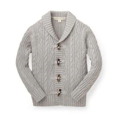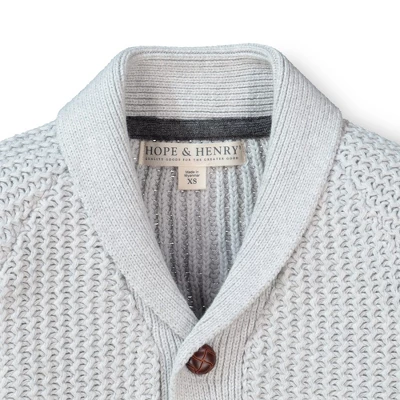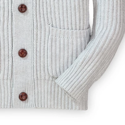 Our handsome shawl collar cardigan is a new version of a timeless classic. Featuring an intricate cable pattern knit in our Light ‘n Lofty Cotton Acrylic blend; giving this sweater a notable handknit appearance that won’t stretch out or lose shape over time. Makes a great baby shower gift for a sweet little one.