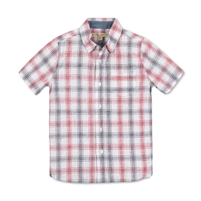 Our short sleeve button down shirt is sure to keep your boy cool and comfortable in warmer weather – because basics don’t have to be boring. Features classic styling that makes it so easy to dress up or down, like buttons at the center front, a functional chest pocket, and a small side vent at the seam for a pop of pattern or color.