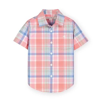 Our classic short sleeve button down shirt is sure to keep your boy cool and comfortable in warmer weather – because basics don’t have to be boring. Features classic styling that makes it so easy to dress up or down, like buttons at the center front and a functional chest pocket.