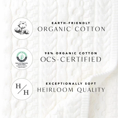 - Earth-friendly organic cotton. 100% organic cotton OCS-Certified. Exceptionally soft heirloom quality.