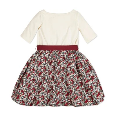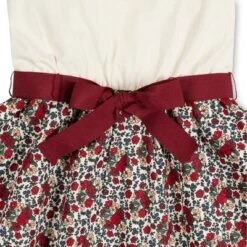 The perfect dress for any occasion! Our French-inspired skater dress is cut in soft organic cotton jersey knit with a hint of stretch in an easy pullover classic style, paired with a woven organic cotton skirt. Features a grosgrain ribbon sash and bow at the center waist for that extra feminine touch.