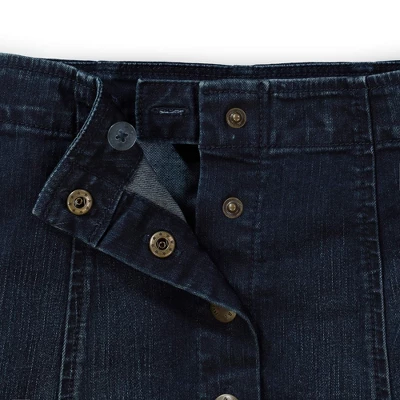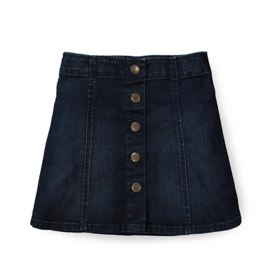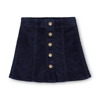 Our smart looking A-line skirt is one of our favorite fall staples for girl. Features brass snap buttons down the front, a hidden button closure at the inner waistband, and cool seaming throughout. And did we mention, it goes with everything? Match her perfectly with our collection of organic tops, dresses, or sweaters.