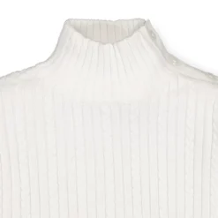 - Mock neck with buttons at the shoulder.