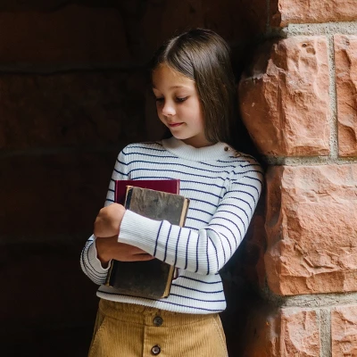 Our smart looking cinched waist skirt in soft organic cotton corduroy is one of our favorite fall staples for girl. Features an easy pull-on silhouette, side pockets, faux horn buttons down the front faux placket, and a sweet cinched waist detail. Pairs perfectly with our collection of organic cotton tops and sweaters.