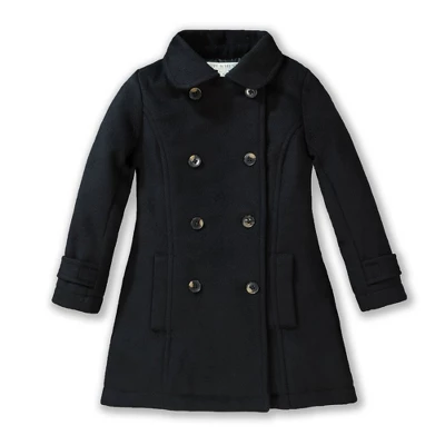 This long statement dress coat is beautiful from all angles. Made in a plush wool melton blend, it is both soft and substantial. Features a classic and timeless silhouette, shirred waist with pleated back, and faux horn buttons.