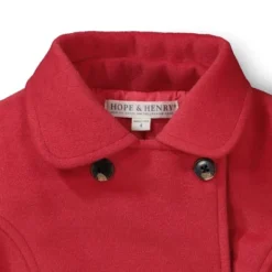 - Rounded collar with double breasted button closure.