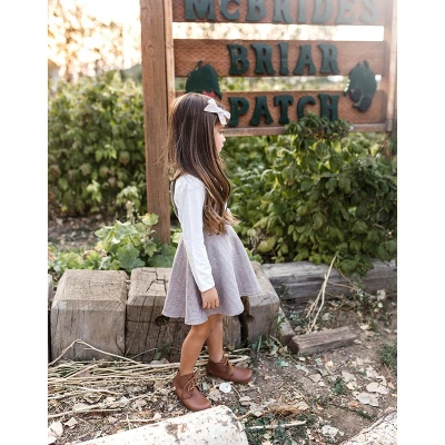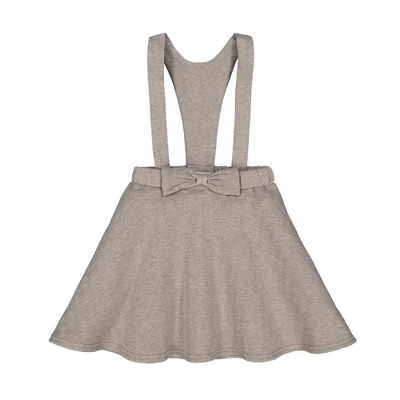 Our twirl-worthy bow front suspender skirt in soft jacquard fleece pairs comfort with picture-perfect style. Features an elastic back and adjustable button front for the perfect fit.