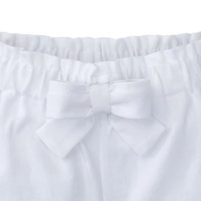 These shorts are soft and ready for play! She will be darling on the playground in these soft knit shorts that don?t miss any detail. With a girly, comfortable ruffled edge and bow these shorts are stylish and playful.