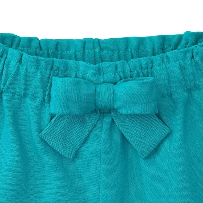 These shorts are soft and ready for play! She will be darling on the playground in these soft knit shorts that don?t miss any detail. With a girly, comfortable ruffled edge and bow these shorts are stylish and playful.