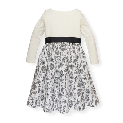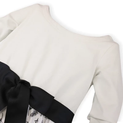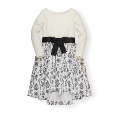 The perfect dress for the holiday season! Our French-inspired skater dress in soft organic cotton/spandex jersey in an easy pullover classic style. Features a beautiful high low skirt cut from organic cotton calvary twill and a grosgrain ribbon sash and bow at the center waist for that extra feminine touch. Goes seamlessly from day to night!