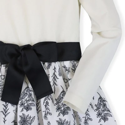 The perfect dress for the holiday season! Our French-inspired skater dress in soft organic cotton/spandex jersey in an easy pullover classic style. Features a beautiful high low skirt cut from organic cotton calvary twill and a grosgrain ribbon sash and bow at the center waist for that extra feminine touch. Goes seamlessly from day to night!