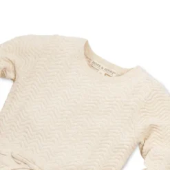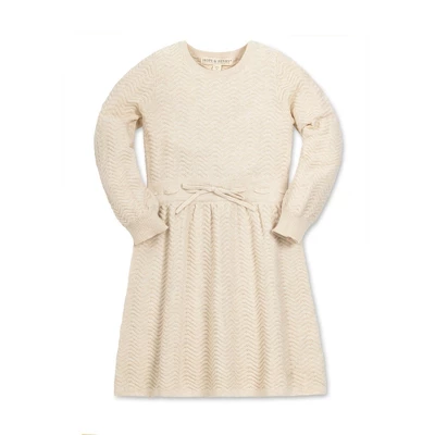 She’ll be the epitome of chic in our adorable pull on sweater dress in soft organic cotton. Features fun and flattering bubble sleeves, a gorgeous chunky chevron stitch texture, gathering at the waist, and a rib knit waistband with decorative bow tie. The perfect combination of style and comfort in one super cozy dress!