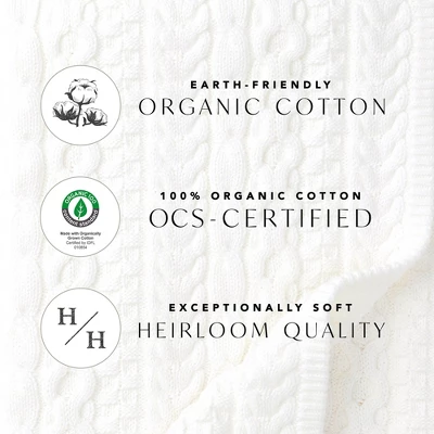 - Earth-friendly organic cotton. 100% organic cotton OCS-Certified. Exceptionally soft heirloom quality.