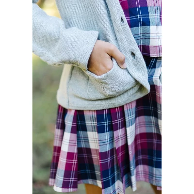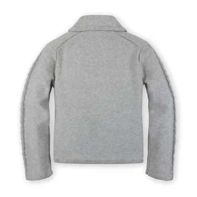 We are obsessed with our adorable shawl collar cable cardigan for all your girl’s fall outfitting. This soft organic cotton sweater is the epitome of equestrian chic for your little lady, and pairs perfectly with our collection of beautiful organic cotton tops and ponte riding pants. Features a shawl collar, cable details at the front pockets and sleeves, and faux leather buttons at the center front.