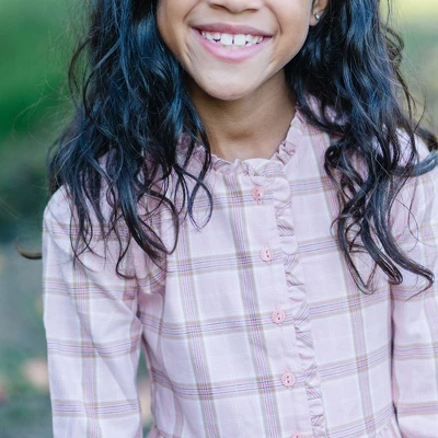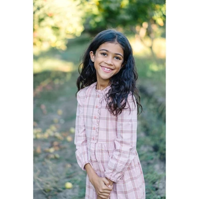 We love the feminine details on our long ruffle neck dress for fall. Cut from a soft organic cotton calvary twill, this dress features sweet ruffle trim at the collar and placket, tiered skirt, button front closure, and sweet lace trim along the collar. Lined in the bodice. Would look adorable paired with tights and boots!