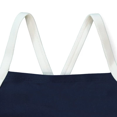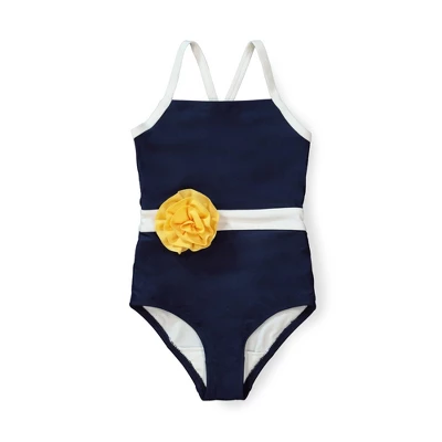 Watch out sunshine, here she comes! Made from our super comfy (and not to mention eco-friendly recycled nylon) swim fabric, this adorable strappy one-piece is perfect for everything from swan dives to sandcastles. Features contrast waist detail with a pretty flower rosette and cross back styling at the back.