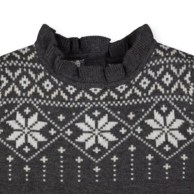 - Beautiful fair isle sweater patternn and ruffle detailing.
