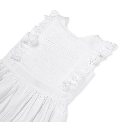 Bring a sweet, refreshing look to your girl’s wardrobe with our flutter sleeve flower girl dress in soft organic cotton. Features flowy flutter sleeves, a pintucked bodice, sweet eyelet embroidery at the bottom hem and sleeves, and a button back closure for an absolutely darling look. It doesn’t get much cuter than this!