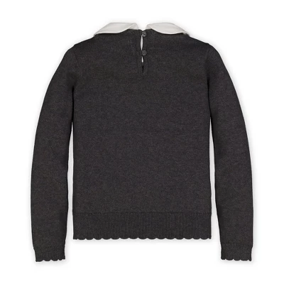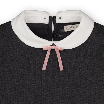 Say “bonjour” to this adorably chic French-inspired sweater for the ultimate in style. Our adorable long sleeve sweater top features a velvet bow detail, back neck closure, and a woven peter pan collar that detaches for two looks in one!