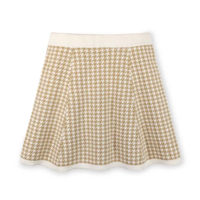 C’est chic! Our adorable classic houndstooth sweater skirt in soft organic cotton is a sophisticated wardrobe staple for your little lady. This neutral piece layers perfectly with our collection of organic cotton tops and sweaters, or go for an adorable head to toe look with our matching cardigan! Features an elastic waistband for easy on and off.