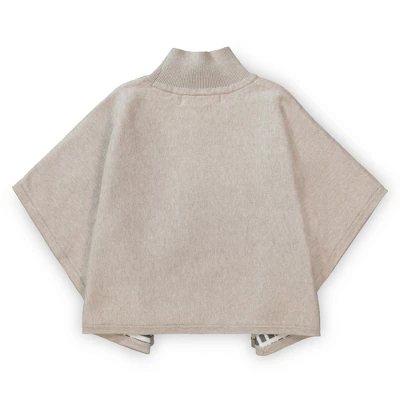 This fabulous cape is a show stopper! Features a cozy mock neck with bow detail, shorter sleeves, all in a beautiful and bold organic cotton tan intarsia plaid. Instantly pulls together any fall look and pairs perfectly with our collection of organic cotton blouses, skirts, pants, and leggings. Get the camera ready!