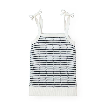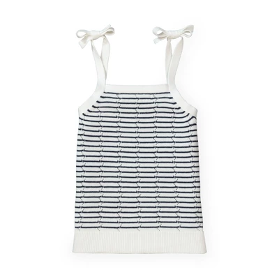 A classic tank silhouette in soft organic cotton feels oh-so-special thanks to a combo of sweet pointelle knit and preppy nautical stripes. Features knit bows at the shoulders and rib trim.
