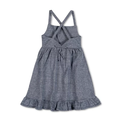 Your girl will be sweet and summer ready in our flattering knit sundress, styled with a bottom flounce in our soft organic cotton jersey knit. Features cross back straps and a bow detail at the back waist for an easy pull-on style that she’ll love to wear. Look out summer, here she comes!