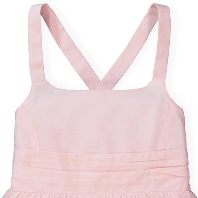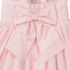 Our super special party dress in soft organic cotton has all the incredible details that make it perfect for everything from dinner with the family to twirling on a dance floor. Features a beautiful embroidered hem, pleated waistband, crossback straps, and a dramatic bow and button closure at the back. A showstopper!
