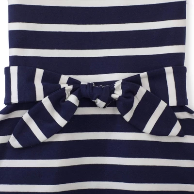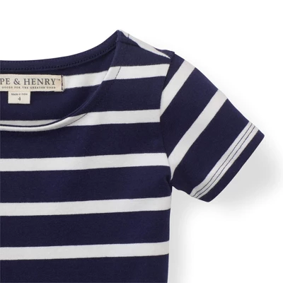 An easy fit and flare silhouette and comfy stretch-blend organic cotton make this nautical-inspired dress an adorable style for family photos and playdates alike. Features short sleeves, a rounded neckline, and a faux waist tie for that feminine touch. A sweet style she’ll be wearing and twirling in all season long.